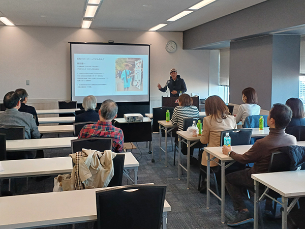 2025/11/17 秋の半日研修会及び懇親会が開催されました11月17日(月)、秋の半日研修会と懇親会が開催されました。今回の研修会の内容は、FMヨコハマのリポーターの藤田優一さんの講演会、FMヨコハマの放送スタジオ訪問、横浜中税務署の小岩井副署長の講演会の三本柱。研修会から懇親会まで、すべてランドマークタワー内で完結するという、ほぼエレベーターの上下移動で収まる効率のいい行程でした。 15時にランドマークタワーのオフィス棟ロビーに集合して、同タワー25階の貸し会議室へ移動。参加者は16名で、FMヨコハマリポーターの藤田優一さんの話を約45分間、聴きました。藤田さんがリポーターになった経緯、リポーターとしての経歴や印象に残った出来事、正しい発音と時代による変化、神奈川県内のおすすめスポットなどの内容で、話のプロの楽しい語り口に引き寄せられました。 16時15分頃からFMヨコハマの放送スタジオに移動。エレベーターで25階から3階まで下りて、エレベーターを乗り換えて10階のスタジオに上がるだけの移動でした。FMヨコハマでは2班に分かれ、非常用バッテリー施設とオンエア中のスタジオを外から見学しました。 FMヨコハマのスタジオ見学後は、再び25階の貸し会議室に移動して、横浜中税務署の小岩井副署長の講演会。17時15分から約40分、消費税関係の話と、小岩井副署長の前任地の広島の話を聴きました。消費税の概要、変遷など、プロジェクターを使って分かりやすく解説していただきました。 講演会後は懇親会。今度は5階に移動して、台湾料理店「阿里山城」で約2時間、食事と歓談を楽しみました。 ![]() ランドマークタワー25階の眺めのいい貸し会議室で、FMヨコハマのリポーター、藤田優一さんの講演を聴講 ![]() 参加者で藤田さんを囲んで ![]() FMヨコハマのスタジオ入り口で ![]() FMヨコハマのスタジオを見学 ![]() 横浜中税務署の小岩井副署長の講演を聴講 ![]() ランドマークタワー5階の台湾料理店、阿里山城で懇親会 |