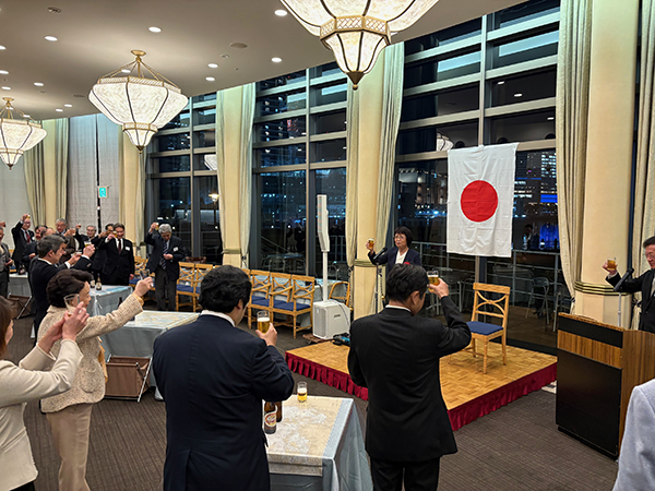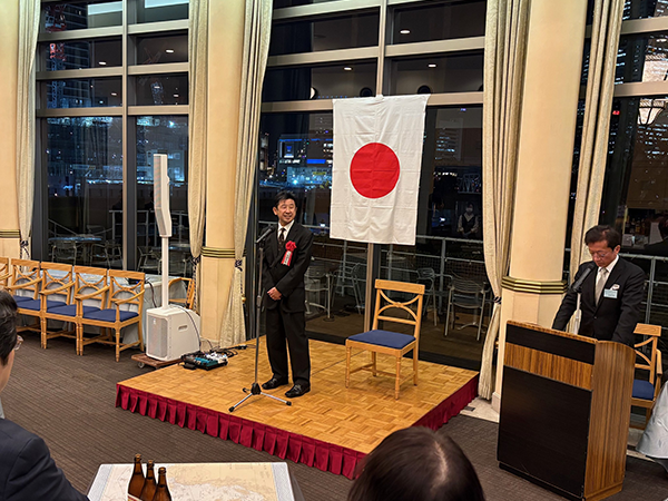 2026/01/19 令和8年新年賀詞交歓会が開催されました1月19日(月)18時00分より、『ナビオス横浜』1階のレストラン、オーシャンにおいて、令和8年の新年賀詞交歓会が開催されました。当会からは六川会長以下会員37名が出席し、横浜中税務署の高盛署長、小岩井茂副署長、吉野なおみ副署長、水統括官、神奈川県横浜県税事務所の今宮一代所長や友誼団体の会長ら来賓9名にご来会いただきました。 ![]() 六川会長が新年の挨拶。司会進行は島峰企画事業委員長 ![]() 横浜中税務署の高盛署長が新年のご挨拶 ![]() 神奈川県横浜県税事務所の今宮所長の発声で乾杯 ![]() ギタリスト松井祐貴さんの演奏 ![]() 恒例の福引抽選会。会員からの協賛により今年も参加者全員に賞品を持って帰っていただきました ![]() 渡辺幸副会長が締めの挨拶 |