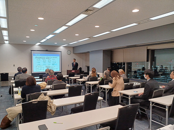 2025/11/17 秋の半日研修会及び懇親会が開催されました11月17日(月)、秋の半日研修会と懇親会が開催されました。今回の研修会の内容は、FMヨコハマのリポーターの藤田優一さんの講演会、FMヨコハマの放送スタジオ訪問、横浜中税務署の小岩井副署長の講演会の三本柱。研修会から懇親会まで、すべてランドマークタワー内で完結するという、ほぼエレベーターの上下移動で収まる効率のいい行程でした。 15時にランドマークタワーのオフィス棟ロビーに集合して、同タワー25階の貸し会議室へ移動。参加者は16名で、FMヨコハマリポーターの藤田優一さんの話を約45分間、聴きました。藤田さんがリポーターになった経緯、リポーターとしての経歴や印象に残った出来事、正しい発音と時代による変化、神奈川県内のおすすめスポットなどの内容で、話のプロの楽しい語り口に引き寄せられました。 16時15分頃からFMヨコハマの放送スタジオに移動。エレベーターで25階から3階まで下りて、エレベーターを乗り換えて10階のスタジオに上がるだけの移動でした。FMヨコハマでは2班に分かれ、非常用バッテリー施設とオンエア中のスタジオを外から見学しました。 FMヨコハマのスタジオ見学後は、再び25階の貸し会議室に移動して、横浜中税務署の小岩井副署長の講演会。17時15分から約40分、消費税関係の話と、小岩井副署長の前任地の広島の話を聴きました。消費税の概要、変遷など、プロジェクターを使って分かりやすく解説していただきました。 講演会後は懇親会。今度は5階に移動して、台湾料理店「阿里山城」で約2時間、食事と歓談を楽しみました。 ![]() ランドマークタワー25階の眺めのいい貸し会議室で、FMヨコハマのリポーター、藤田優一さんの講演を聴講 ![]() 参加者で藤田さんを囲んで ![]() FMヨコハマのスタジオ入り口で ![]() FMヨコハマのスタジオを見学 ![]() 横浜中税務署の小岩井副署長の講演を聴講 ![]() ランドマークタワー5階の台湾料理店、阿里山城で懇親会 |