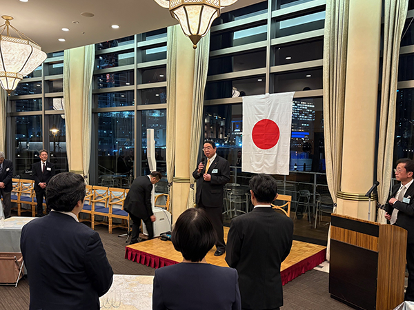 2026/01/19 令和8年新年賀詞交歓会が開催されました1月19日(月)18時00分より、『ナビオス横浜』1階のレストラン、オーシャンにおいて、令和8年の新年賀詞交歓会が開催されました。当会からは六川会長以下会員37名が出席し、横浜中税務署の高盛署長、小岩井茂副署長、吉野なおみ副署長、水統括官、神奈川県横浜県税事務所の今宮一代所長や友誼団体の会長ら来賓9名にご来会いただきました。 ![]() 六川会長が新年の挨拶。司会進行は島峰企画事業委員長 ![]() 横浜中税務署の高盛署長が新年のご挨拶 ![]() 神奈川県横浜県税事務所の今宮所長の発声で乾杯 ![]() ギタリスト松井祐貴さんの演奏 ![]() 恒例の福引抽選会。会員からの協賛により今年も参加者全員に賞品を持って帰っていただきました ![]() 渡辺幸副会長が締めの挨拶 |